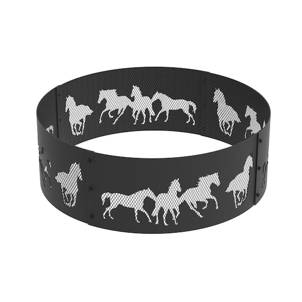 Decorative 36 in. x 12 in. Round Steel Wood Fire Pit Ring - Horse