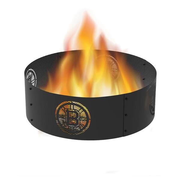 Decorative NHL 36 in. x 12 in. Round Steel Wood Fire Pit Ring - Boston Bruins