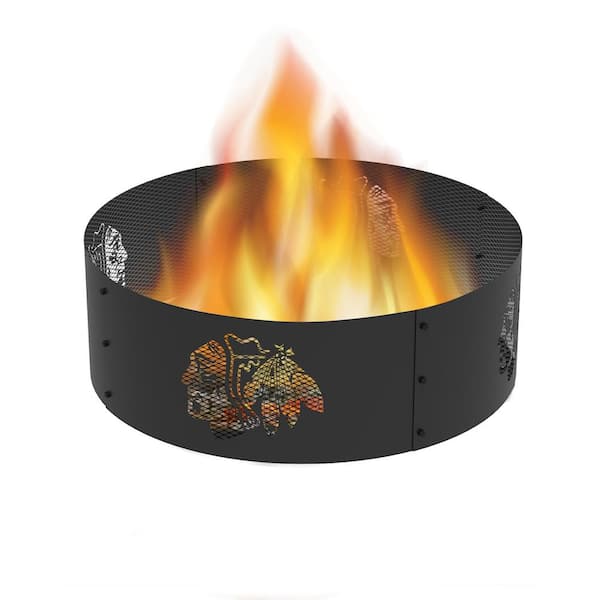 Decorative NHL 36 in. x 12 in. Round Steel Wood Fire Pit Ring - Chicago Blackhawks