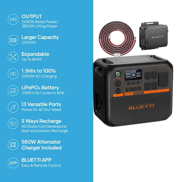 2400W Continuous/3600W Peak Output Power Station AC200PL LiFePO4 Battery Solar Generator with 560W Alternator Charger