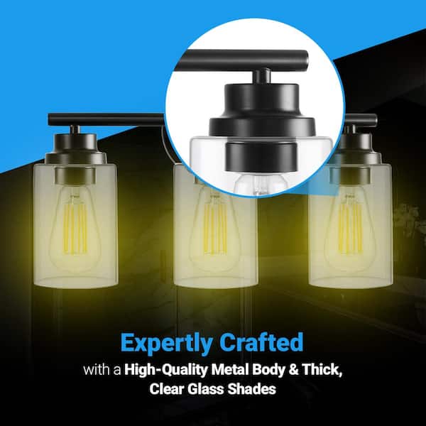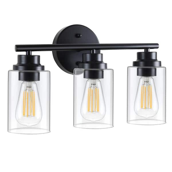 6 in. 3-Light Black Vanity Light Indoor Wall Sconce (2-Pack)