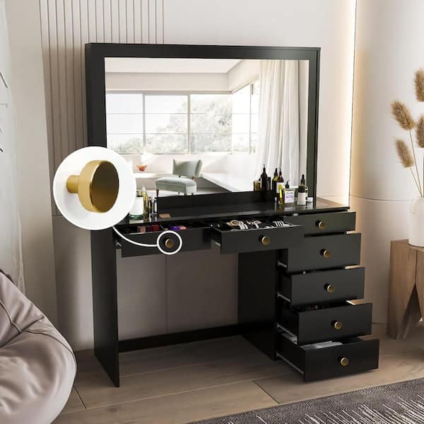 Jane Black Finish, 7 Drawers 57 in. W Dresser with Mirror