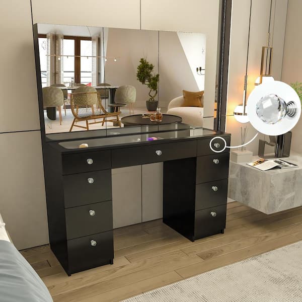 Lily Black Finish, 9-Drawers 53 in. W Dresser with Mirror