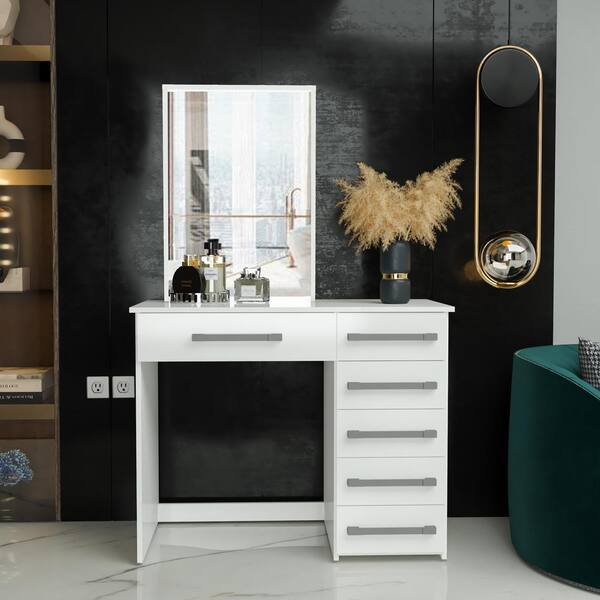 Sofia White Finish, 6-Drawers 22 in. W Dresser with Mirror