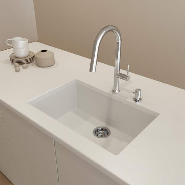 Campino Uno Milk White Granite Composite 27 in. Single Bowl Drop-In/Undermount Kitchen Sink with Strainer