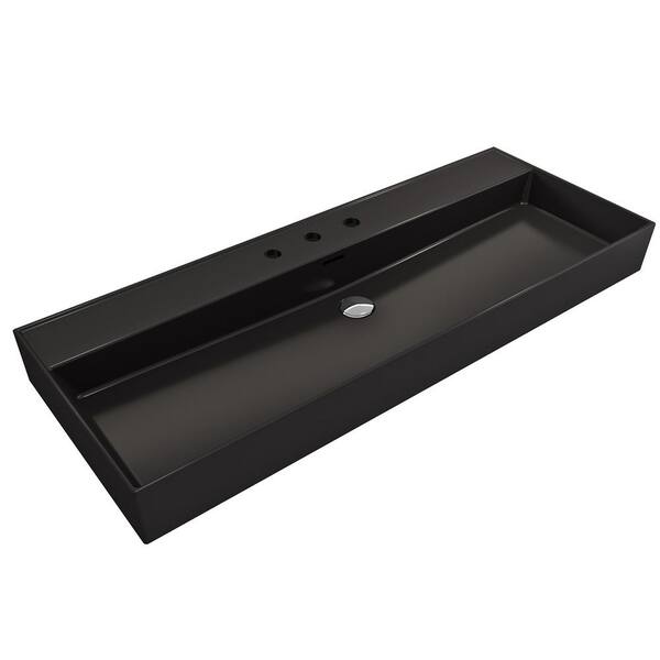 Milano Matte Black 47.75 in. 3-Hole Wall-Mounted Fireclay Rectangular Vessel Sink with Overflow