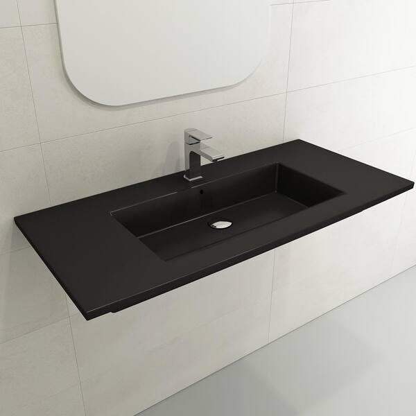 Ravenna Wall-Mounted 40.5 in. 1-Hole Matte Black Fireclay Rectangular Vessel Sink with Overflow