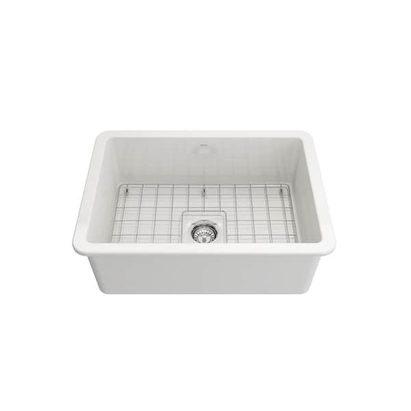 Sotto White Fireclay 27 in. Single Bowl Undermount Kitchen Sink with Accessories