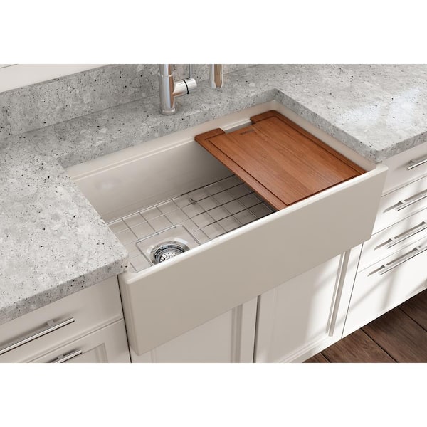 Step-Rim Biscuit Fireclay 30 in. Single Bowl Farmhouse Apron Front Workstation Kitchen Sink w/ Accessories