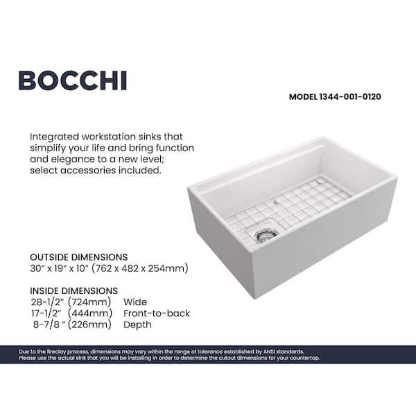Step-Rim White Fireclay 30 in. Single Bowl Farmhouse Apron Front Workstation Kitchen Sink w/ Accessories