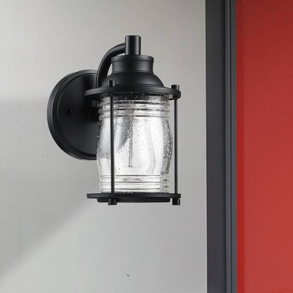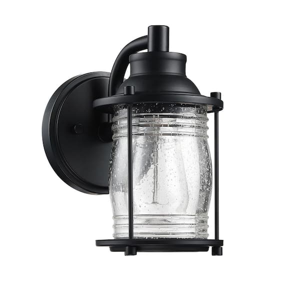 4.7 in. 1-Light Dark Black Finish Hardwired Outdoor Wall Lantern Wall Sconce with Seeded Glass Shade