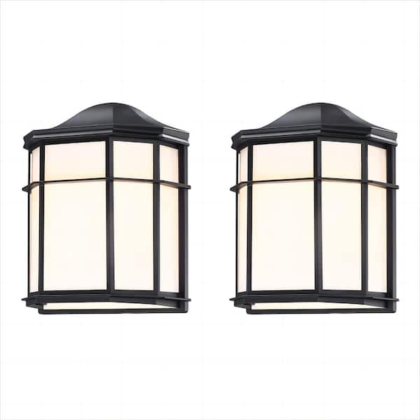 9.8 in. Retro Textured Black Outdoor Hardwired Wall Lantern Scone (2-Pack)