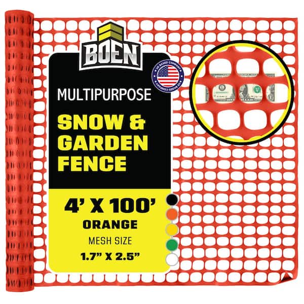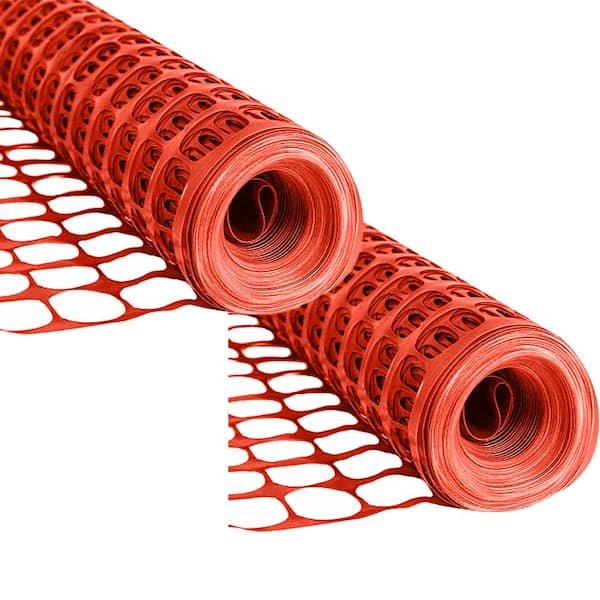 4 ft. x 100 ft. Orange Temporary Fence, Mesh Snow Fence, Plastic, Safety Garden Netting, Above Ground Barrier (2-Pack)