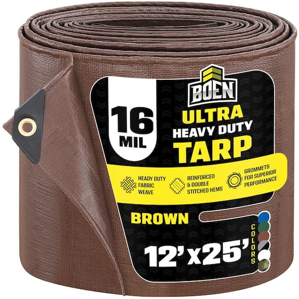 Ultra Heavy-Duty Brown Tarps 12 ft. x 25 ft. Waterproof and UV Resistant, 16 Mil Thick