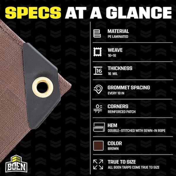 Ultra Heavy-Duty Brown Tarps 20 ft. x 20 ft. Waterproof and UV Resistant, 16 Mil Thick