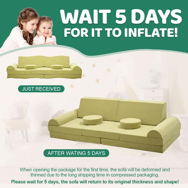 11-Piece Kids Couch Sofa 71 in. L Modular Toddler Couch for Playroom Fold Out Couch Set for Kids, Green