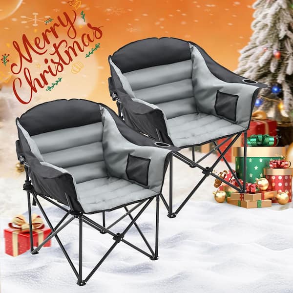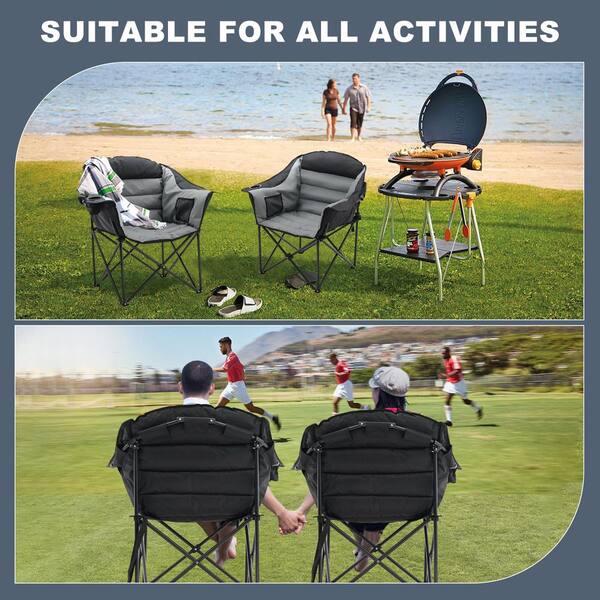 2PK Oversized Camping Chair Fully Padded Folding Moon Saucer Chair Heavy Duty FoldingChair with Cup Holder and Carry Bag