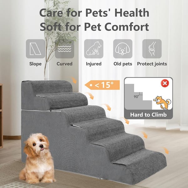 6-Step Dog Stairs for Small Dog and Cat Foam Pet Steps Non-Slip Waterproof Folding Dog Steps w/Removable Washable Cover
