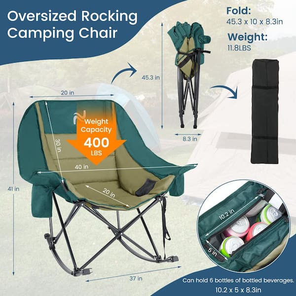 Oversized Rocking Camping Chair Metal Padded Camping Chair Portable Foldable Outdoor Rocking Chair for Camping, Green