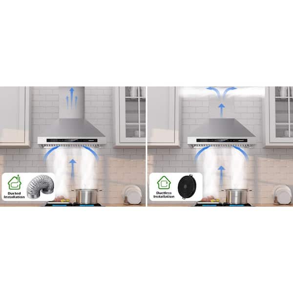 30 in. 900CFM Wall Mounted Range Hood in Stainless Steel with Dishwasher Safe Metal Mesh Filter and LED Light