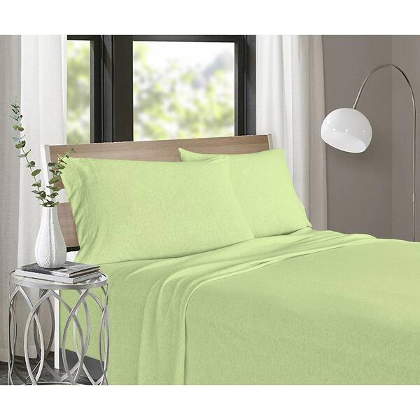4-Piece Sage Solid Cotton Blend/Poly Queen Jersey Knit Sheet Set