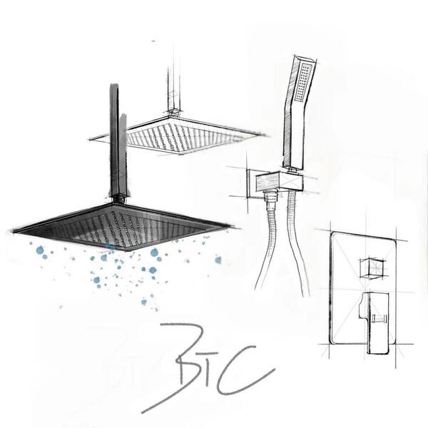 STAR Single-Handle Spray Square High Pressure Shower Faucet with Hand Hold Spray in Matte Black (Valve Included)