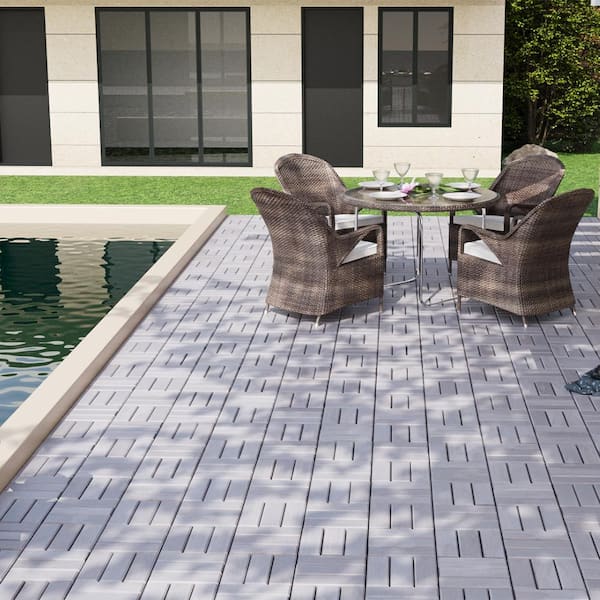 1 ft. x 1 ft. Square Interlocking Acacia Wood Patio Deck Tiles Outdoor Checker Pattern Flooring Tiles Pack of 10 Tiles