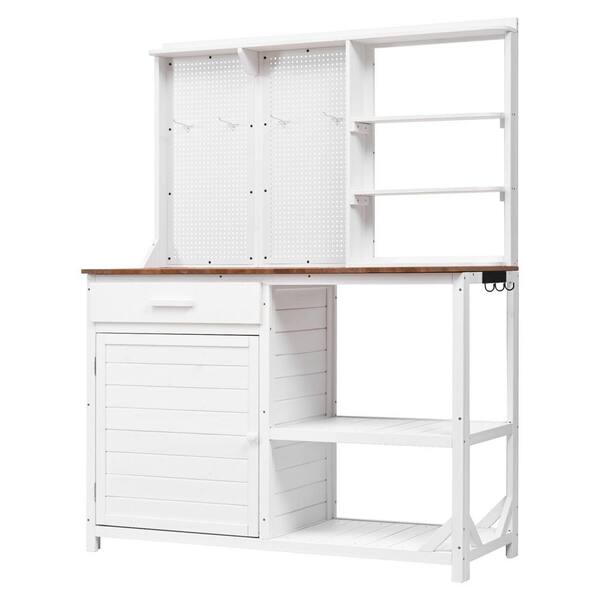 50.2 in. W x 65.7 in. H White Wood Garden Workstation Potting Bench and Table with Hutch and Pegboard with Hooks