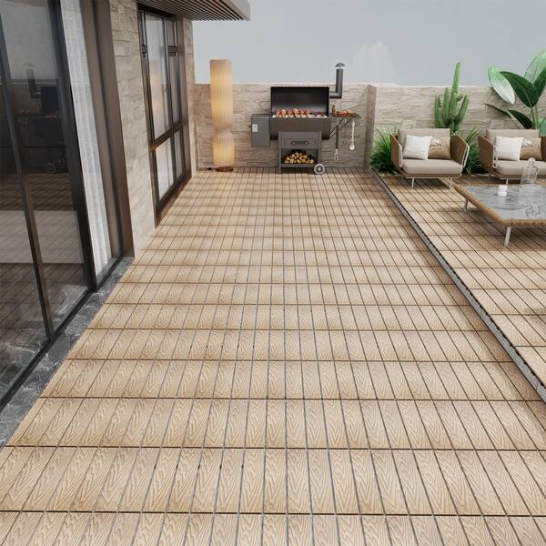 Teak Brown DIY 1 ft. x 1 ft. All-Weather Outdoor Wood-Plastic Interlocking Patio Deck Tiles Garage Floor Tiles (11-Pack)