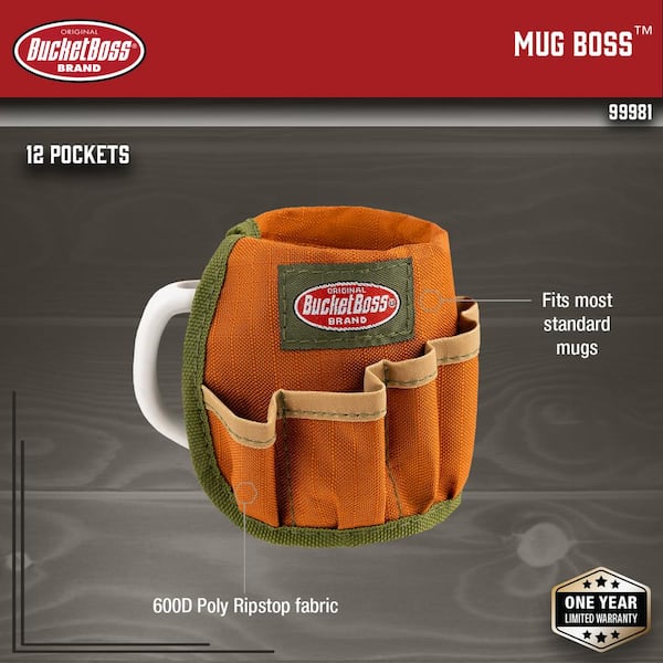 • 12 pocket, 6 in. wide, hook and loop closure mug office tool bag