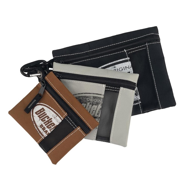 • 600d poly ripstop zip-top tool bags in brown, grey, and black