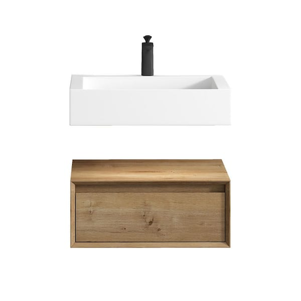 Alysa 24 in. W. x 20 in. D x 23 in. H Single Sink Floating Bath Vanity in White Oak with White Acrylic Top