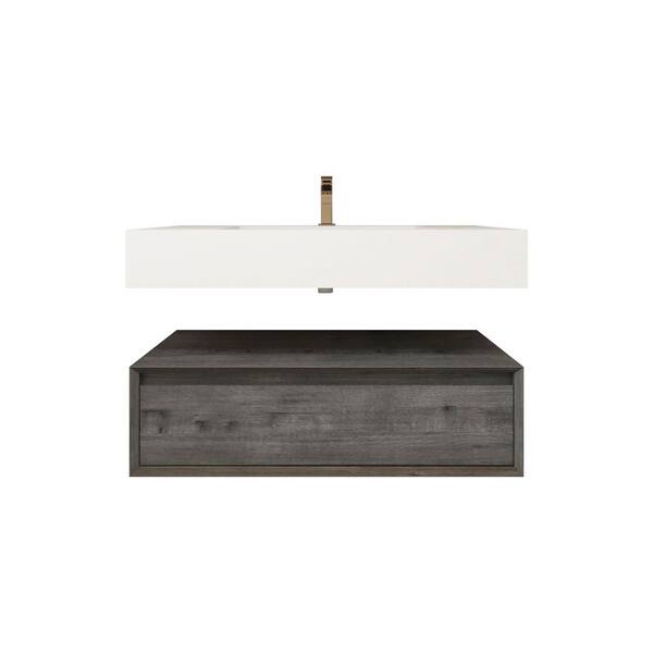 Alysa 36 in. W. x 20 in. D x 23 in. H Single Sink Floating Bath Vanity in Smoke Oak with White Acrylic Top