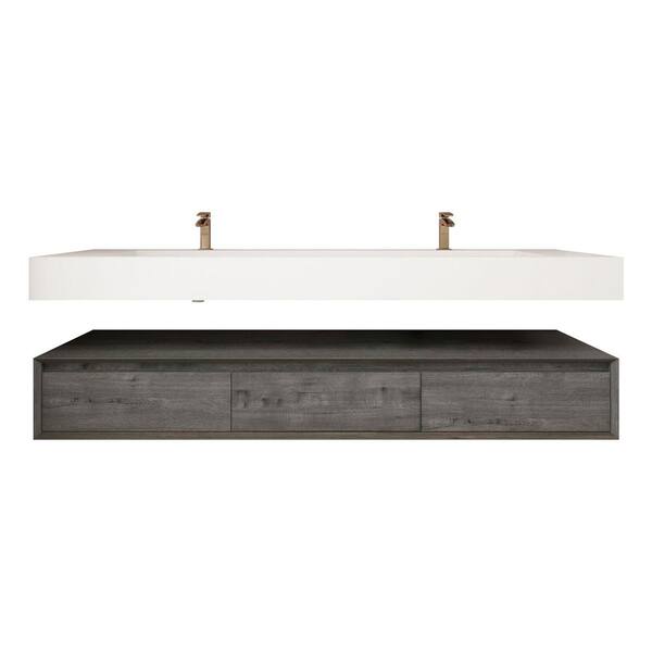 Alysa 71 in. W. x 20 in. D x 23 in. H Double Sink Floating Bath Vanity in Smoke Oak with White Acrylic Top