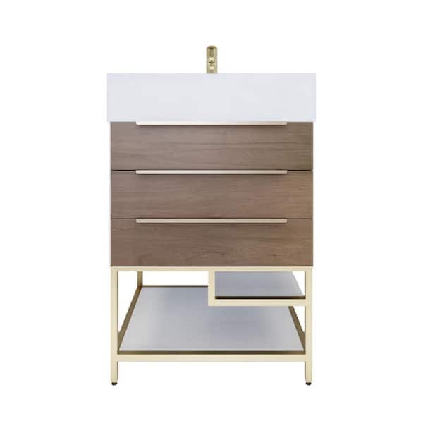 Bethany 24 in. W x 20 in. D x 36 in. H Single Sink Freestanding Bath Vanity in Light Oak with White Acrylic Top