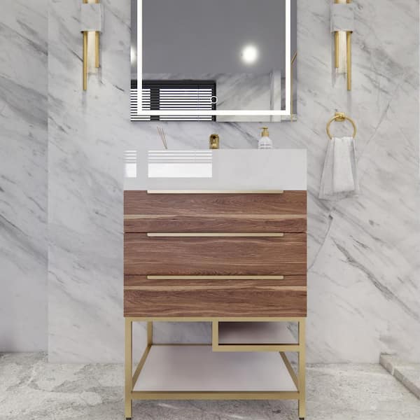 Bethany 24 in. W x 20 in. D x 36 in. H Single Sink Freestanding Bath Vanity in White Oak with White Acrylic Top