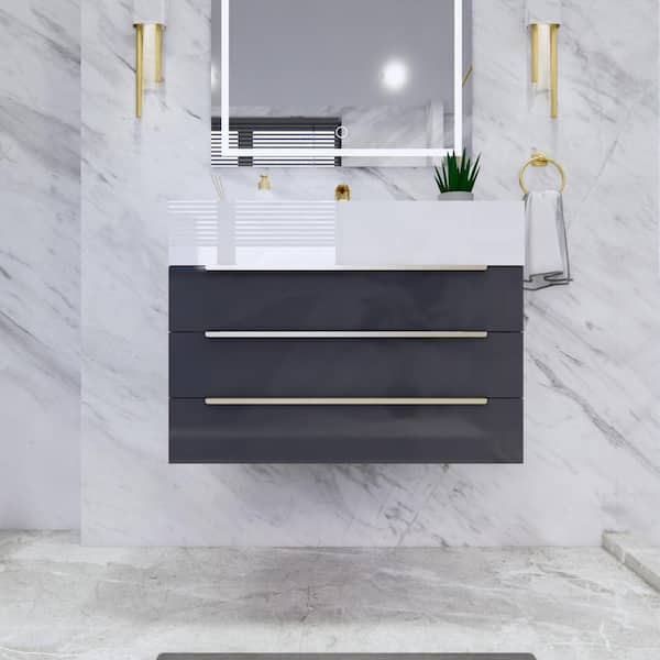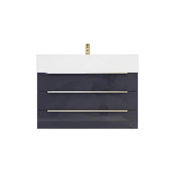 Bethany 30 in. W x 20 in. D x 22 in. H Single Sink Floating Bath Vanity in Gloss Gray with White Acrylic Top