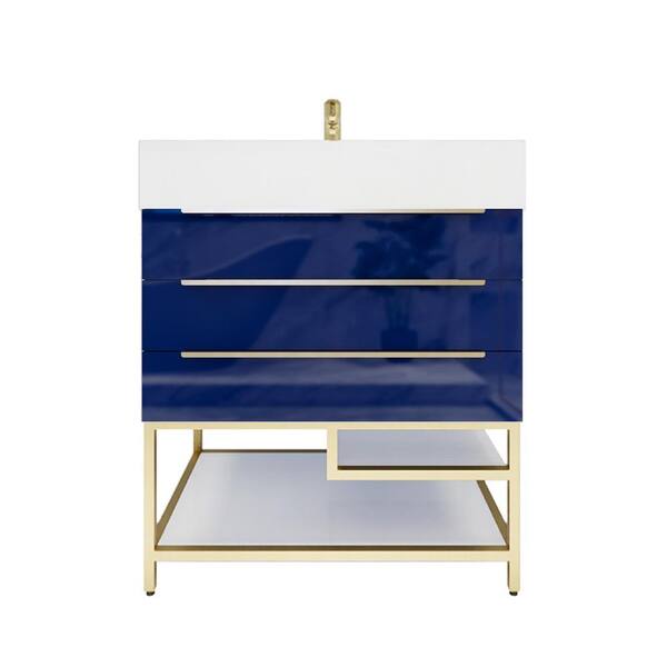 Bethany 30 in. W x 20 in. D x 36 in. H Single Sink Freestanding Bath Vanity in Gloss Night Blue with White Acrylic Top