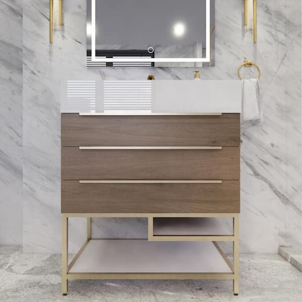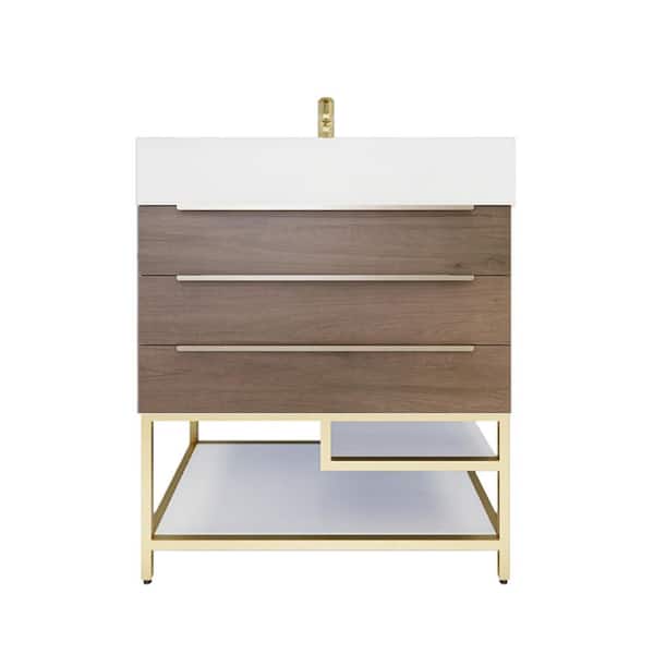 Bethany 30 in. W x 20 in. D x 36 in. H Single Sink Freestanding Bath Vanity in Light Oak with White Acrylic Top