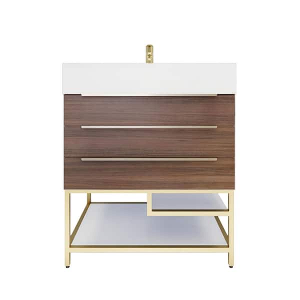 Bethany 30 in. W x 20 in. D x 36 in. H Single Sink Freestanding Bath Vanity in Rosewood with White Acrylic Top