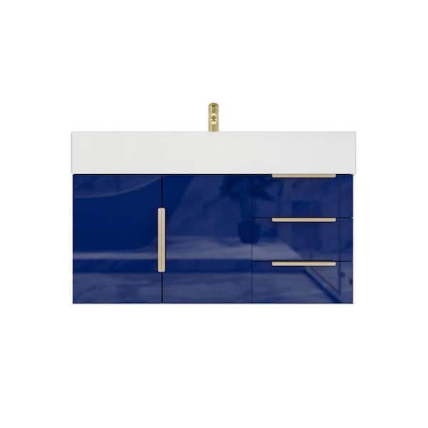 Bethany 36 in. W x 20 in. D x 22 in. H Single Sink Floating Bath Vanity in Gloss Night Blue with White Acrylic Top