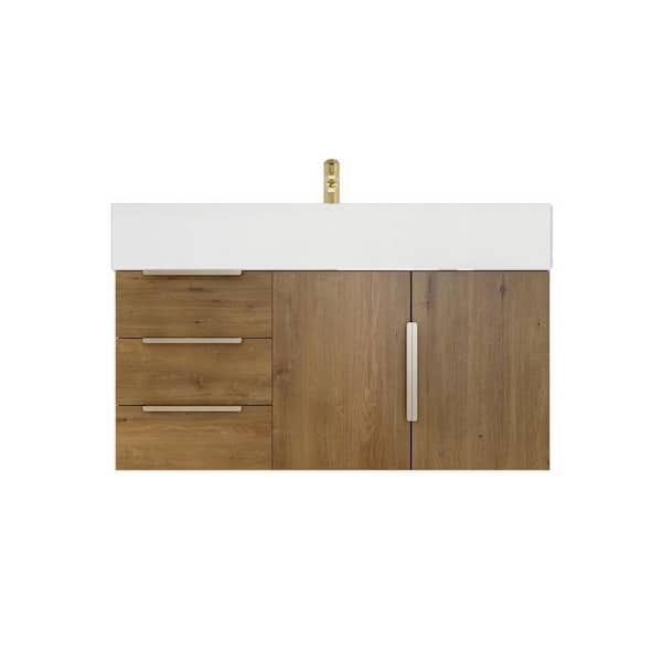 Bethany 36 in. W x 20 in. D x 22 in. H Single Sink Floating Bath Vanity in Oak with White Acrylic Top