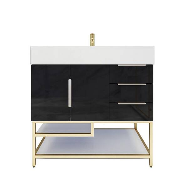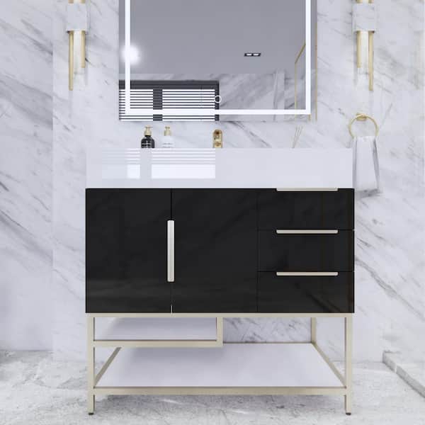 Bethany 36 in. W x 20 in. D x 36 in. H Single Sink Freestanding Bath Vanity in Gloss Black with White Acrylic Top