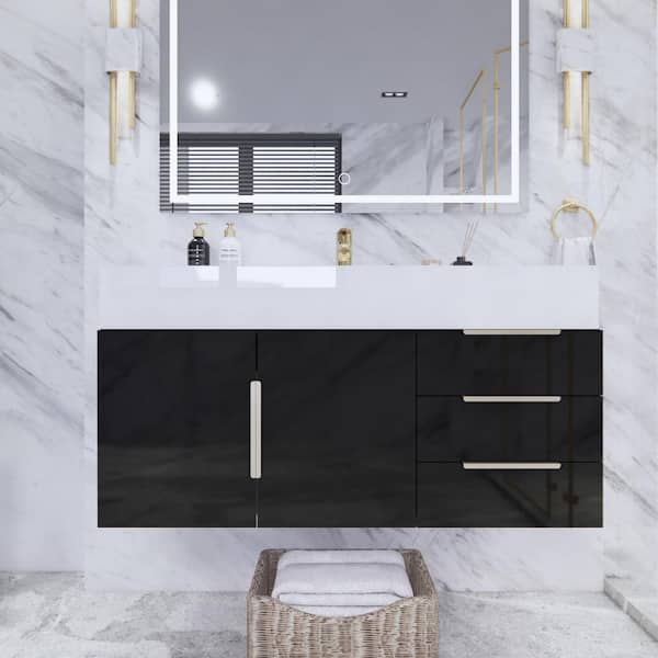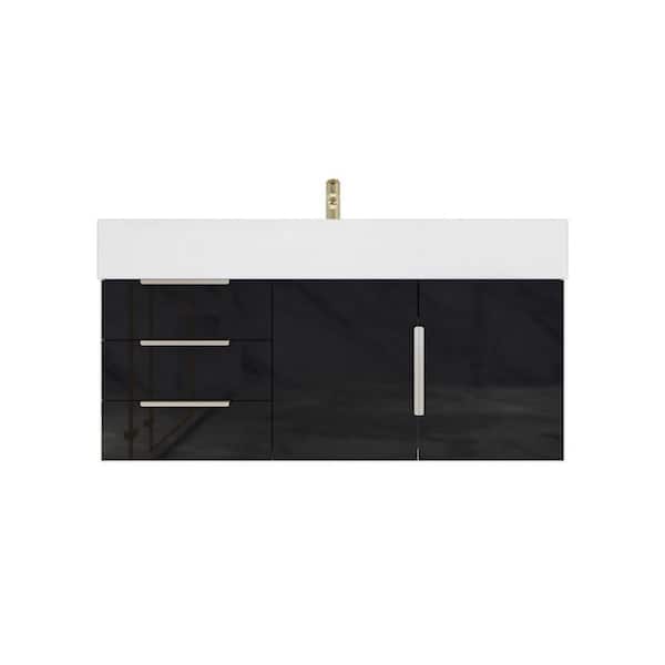 Bethany 42 in. W x 20 in. D x 22 in. H Single Sink Floating Bath Vanity in Gloss Black with White Acrylic Top