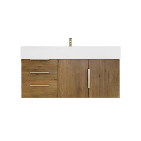 Bethany 42 in. W x 20 in. D x 22 in. H Single Sink Floating Bath Vanity in Oak with White Acrylic Top