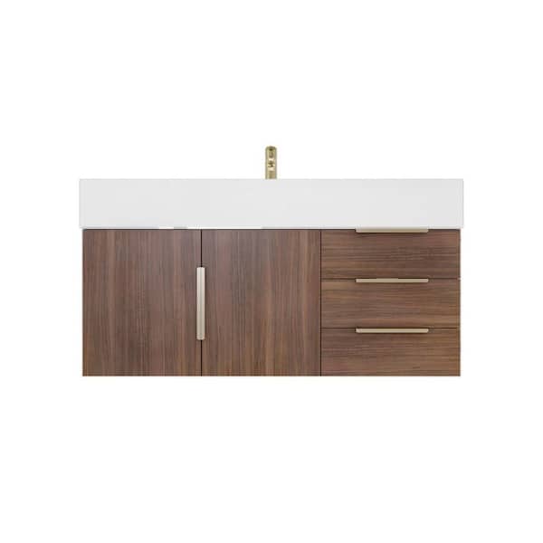 Bethany 42 in. W x 20 in. D x 22 in. H Single Sink Floating Bath Vanity in Rosewood with White Acrylic Top