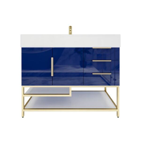 Bethany 42 in. W x 20 in. D x 36 in. H Single Sink Freestanding Bath Vanity in Gloss Night Blue with White Acrylic Top
