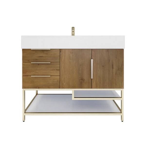 Bethany 42 in. W x 20 in. D x 36 in. H Single Sink Freestanding Bath Vanity in Oak with White Acrylic Top