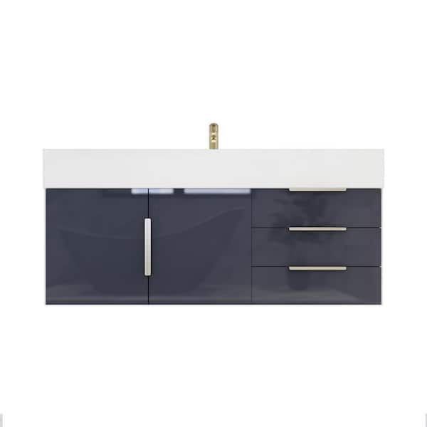 Bethany 47 in. W x 20 in. D x 22 in. H Single Sink Floating Bath Vanity in Gloss Gray with White Acrylic Top