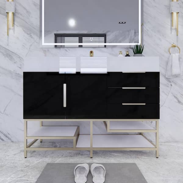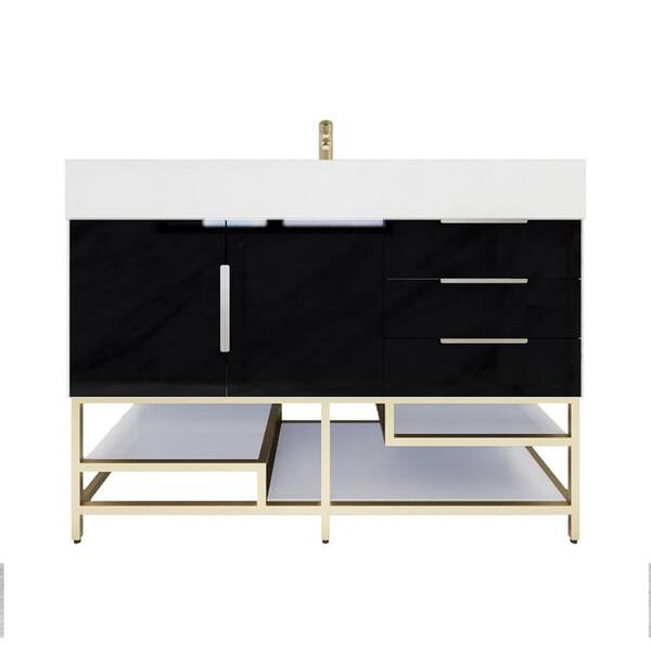 Bethany 47 in. W. x 20 in. D x 36 in. H Single Sink Freestanding Bath Vanity in Gloss Black with White Acrylic Top